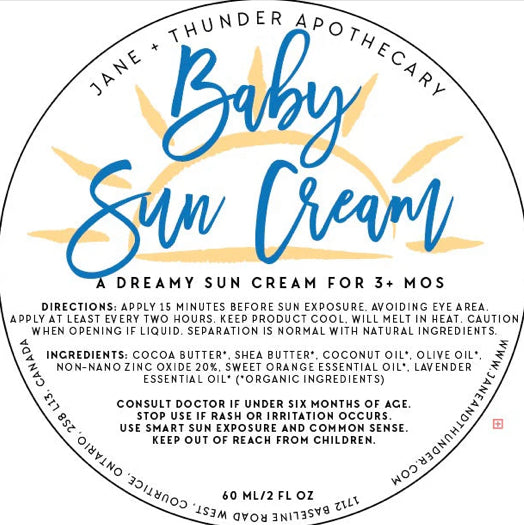 made with love, olive oil*, cocoa butter*, Shea butter*, coconut oil*, non nano zinc oxide 20%, sweet orange essential oil*, lavender essential oil*