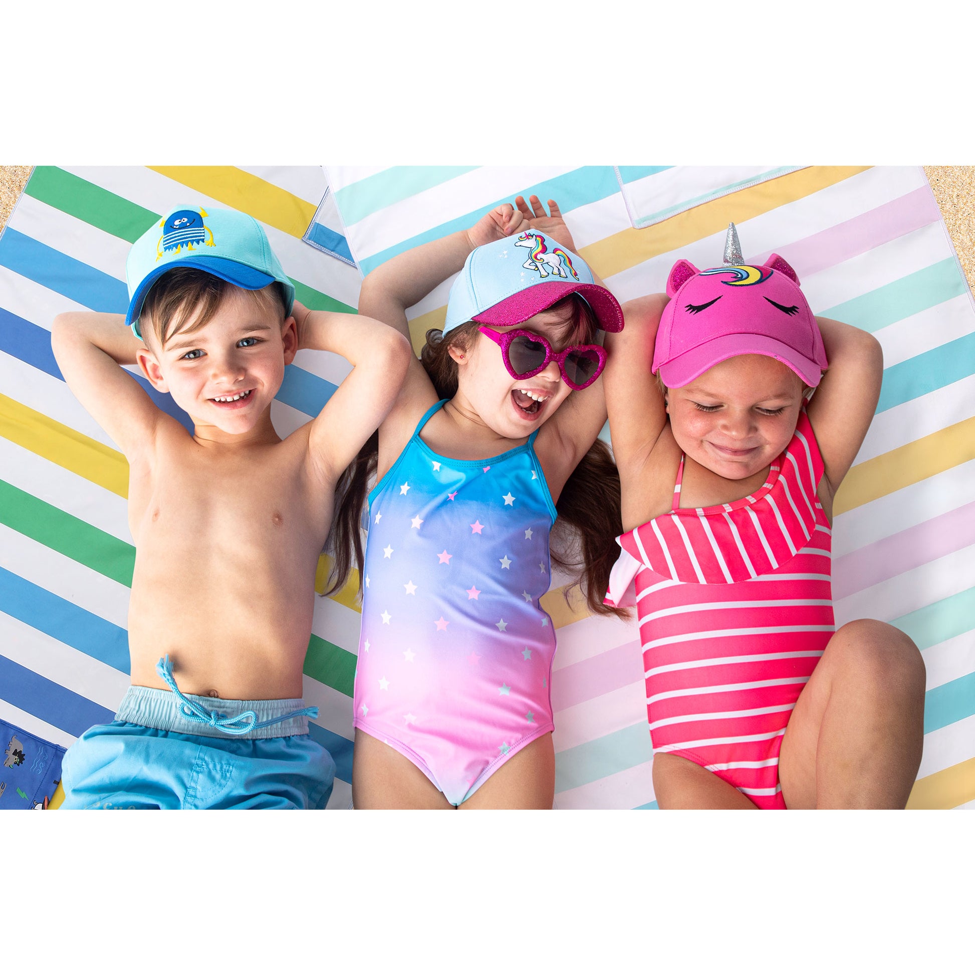 Our uniquely designed ball caps are lightweight, adjustable and breathable. Your child will love the fun colours and cute embroidered motifs. A great way to protect them from the sun in style!