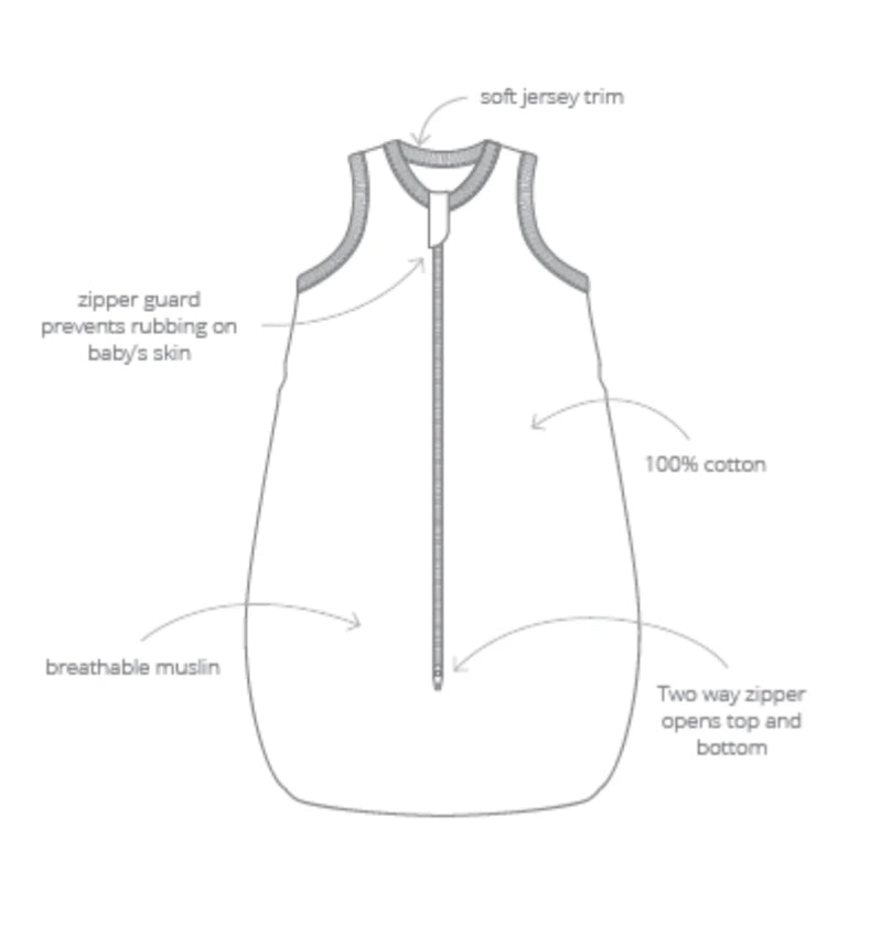 Use as a wearable blanket to keep little ones warm and cozy. Can be worn over pyjamas for extra comfort. Made with breathable muslin to keep temperature regulated.