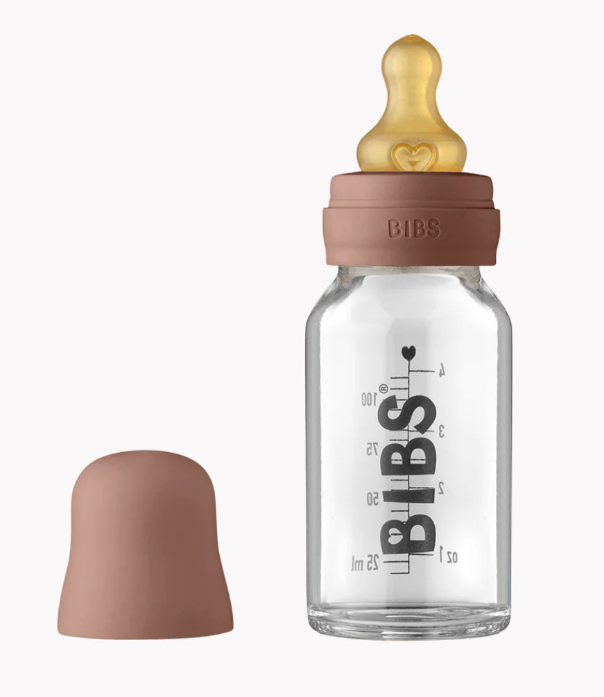 110 ml Baby Glass Bottle Complete Set(Round Natural Rubber)-BIBS