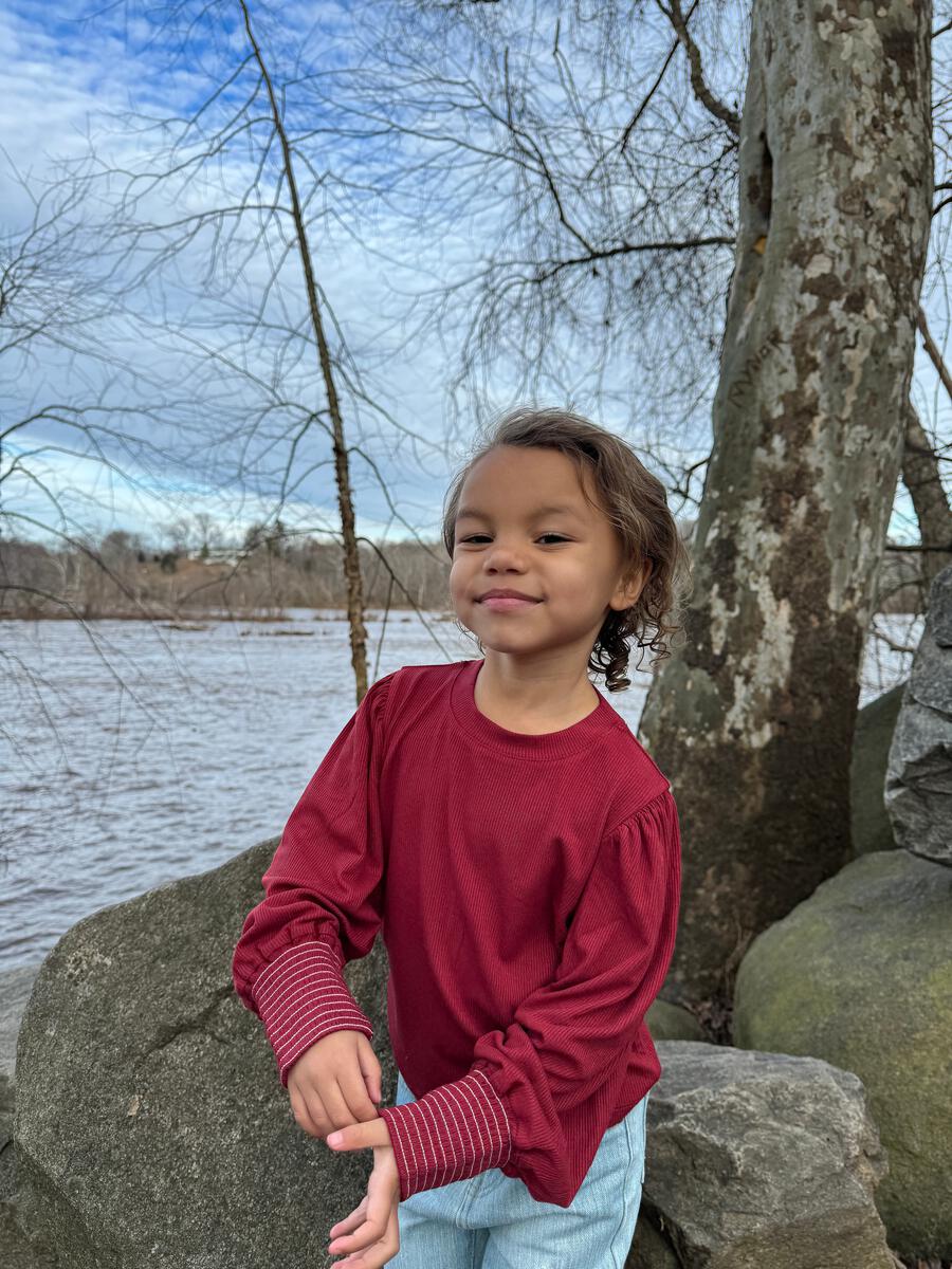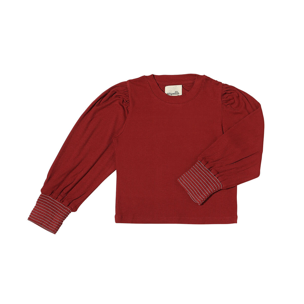 Soft Stretchy Rib Knit with a Gathered Sleeve. 96%Rayon 4%Spandex