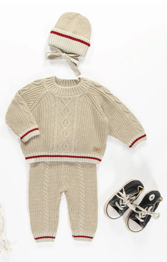 Cream Knit Cable knit Sweater Pants -Souris Mini