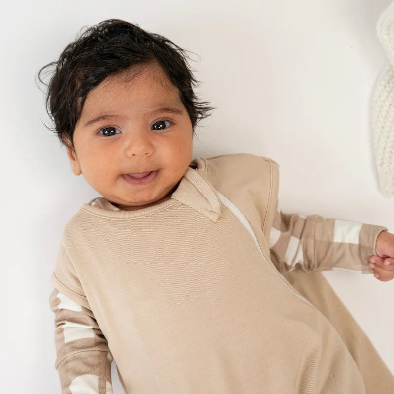 A wearable blanket allowing baby to sleep safely through the night. These sleep bags are designed to give baby plenty of room to kick and move, while fitting securely around the neck and armhole. Features a 2-way zipper for easy night time diaper changes. These sleep bags are made of Bamboo Rayon which is highly breathable and moisture wicking making it an ideal overnight fabric for baby.