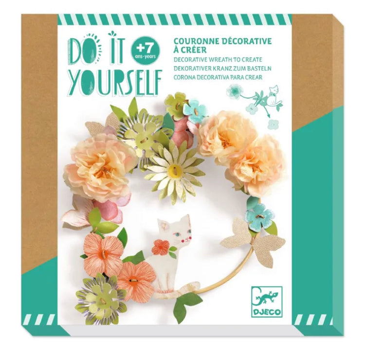 - A complete creative kit for making a decorative wreath of flowers. Children will be introduced to the technique of creating tissue paper flowers, which they will assemble with the other delicately illustrated elements to create a delightful decorative wreath to embellish a door or bedroom.