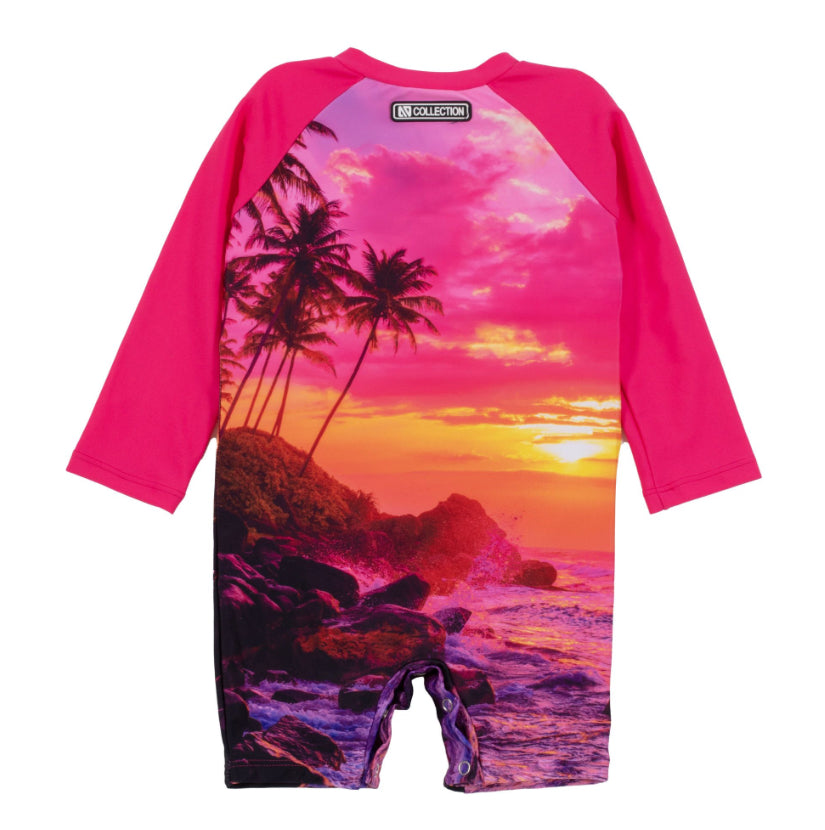 Fuchsia Sunset One-Piece Rashguard Swimsuit-Nano