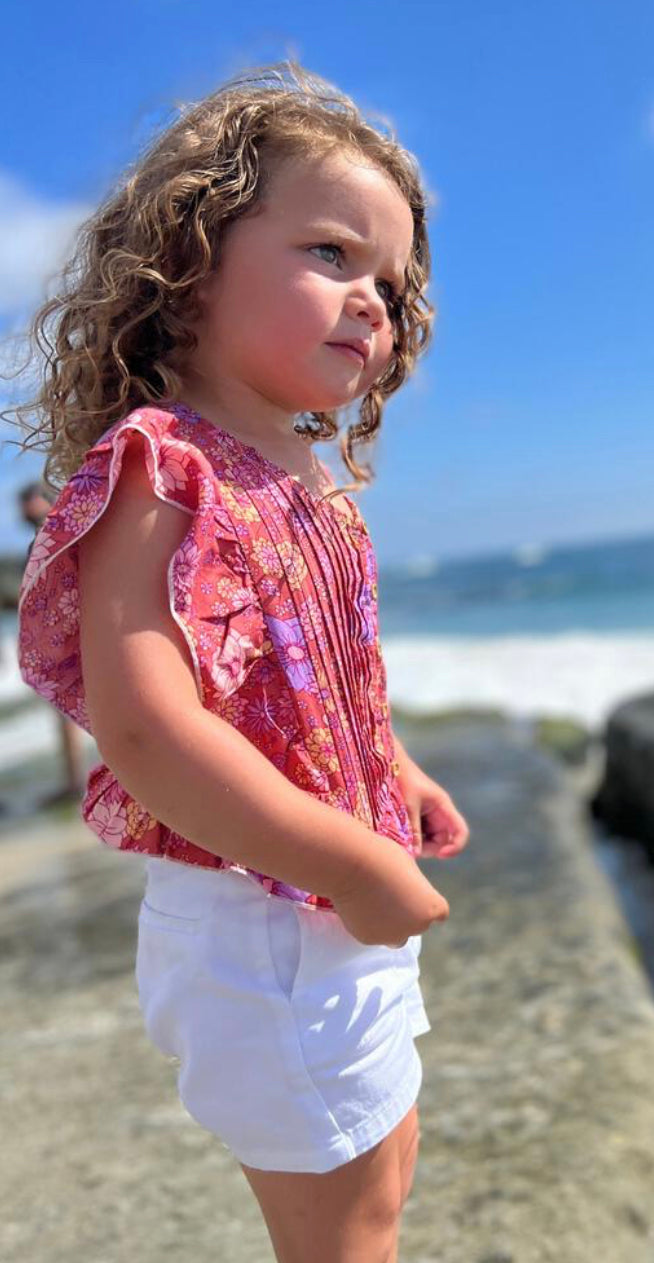 Everyone loves a lightweight and lovely summer top, so we thought wed introduce you to the Georgia top! With her sweet flutter sleeve and button front, she pairs perfectly with our Raven skirt or a cute pair of shorts!