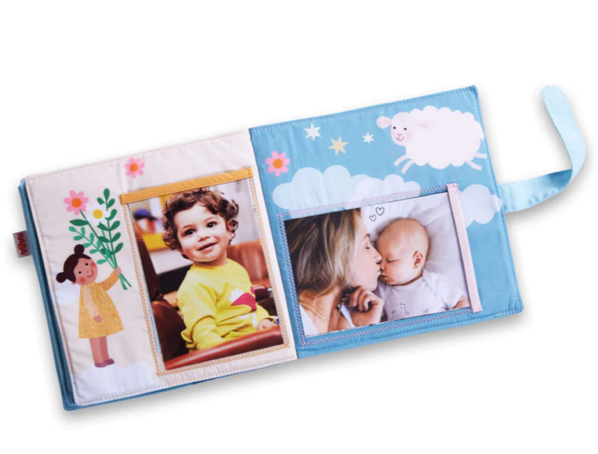 With an easy to open fabric closure, babies will adore finding photos of the various angels they have in their life. Thanks to its sliding pockets, pictures can easily be interchanged allowing for new discoveries and stories to share.