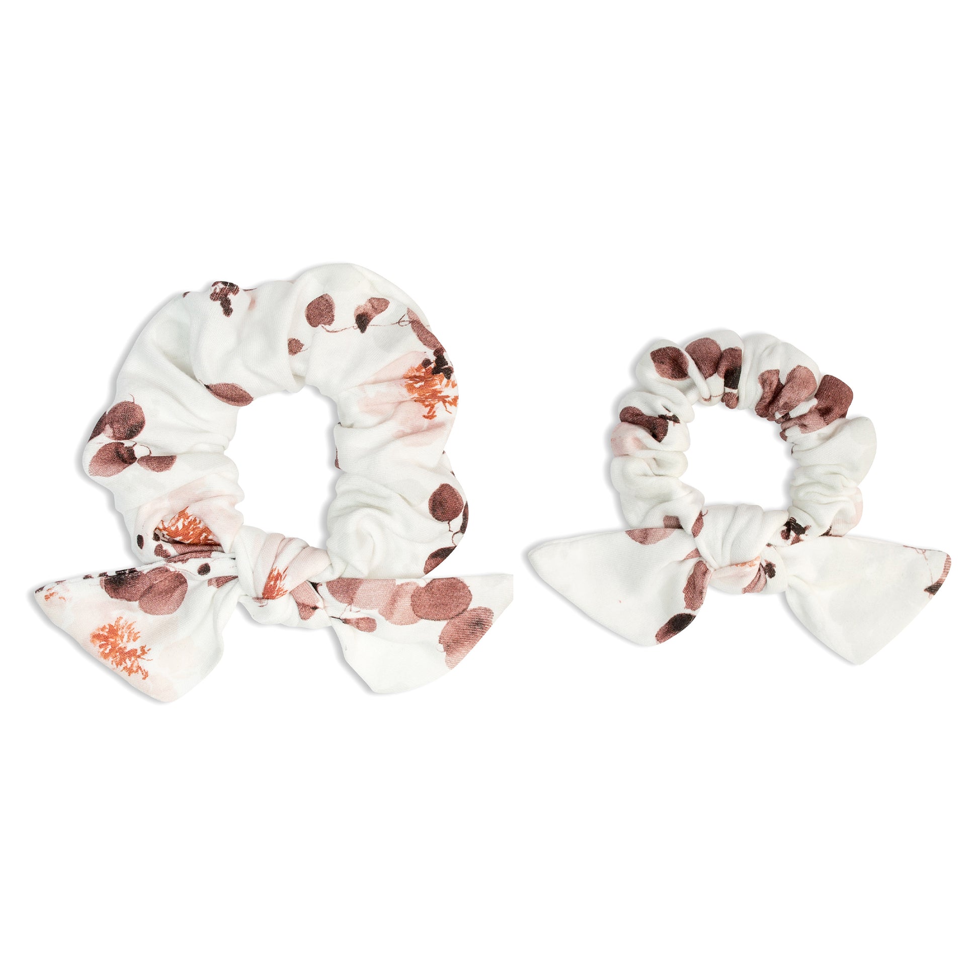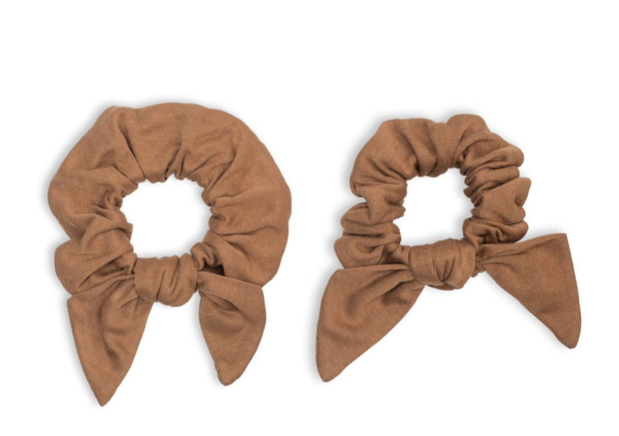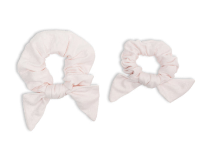 Matching Mommy + Me scrunchies so moms can twin with their mini. Set of two each with an adorable bow detail. Made with Lulujo's super soft bamboo jersey for ouch-less updos.