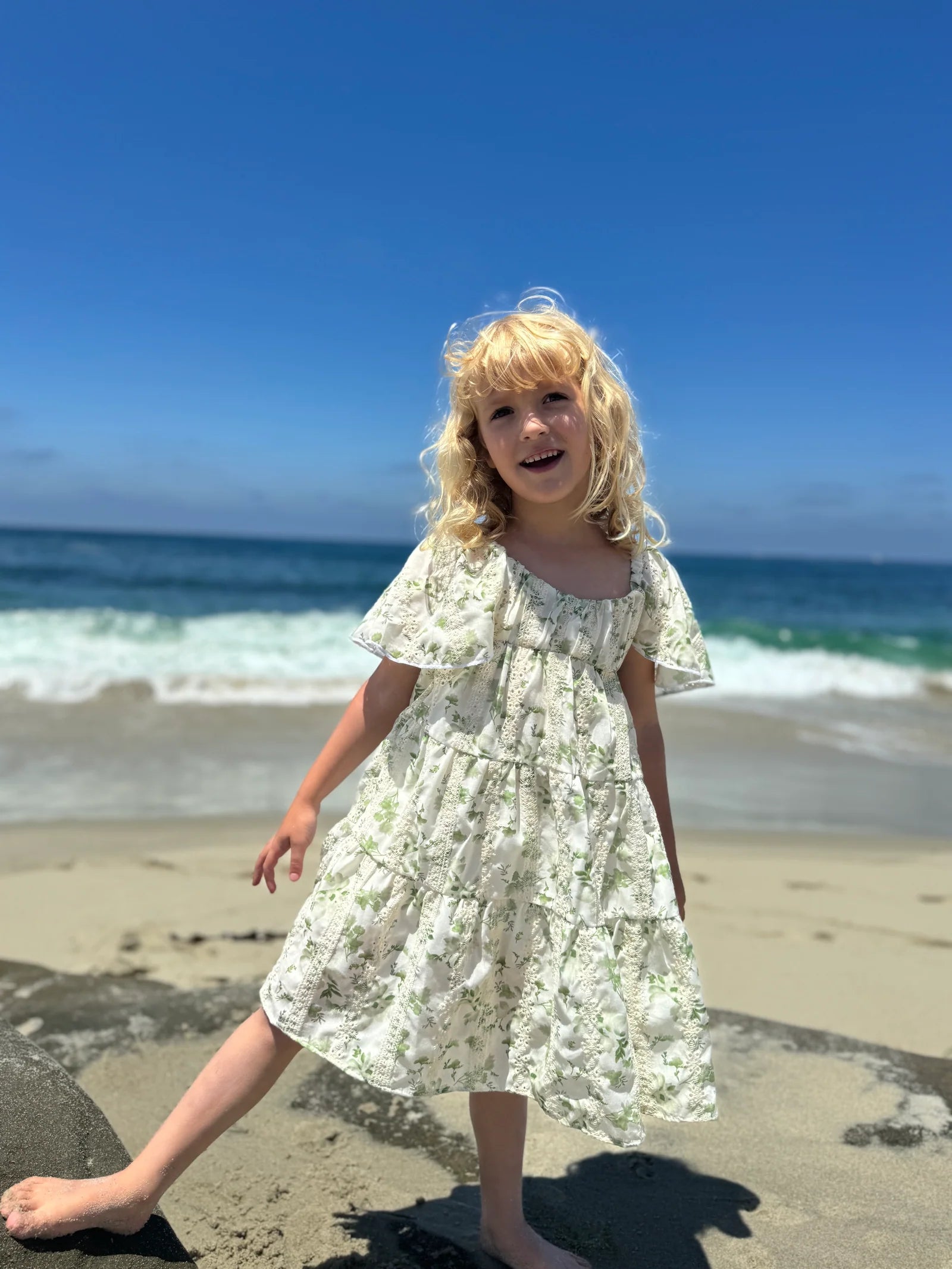 Sierra Dress - Green Print Eyelet - Vignette Girls