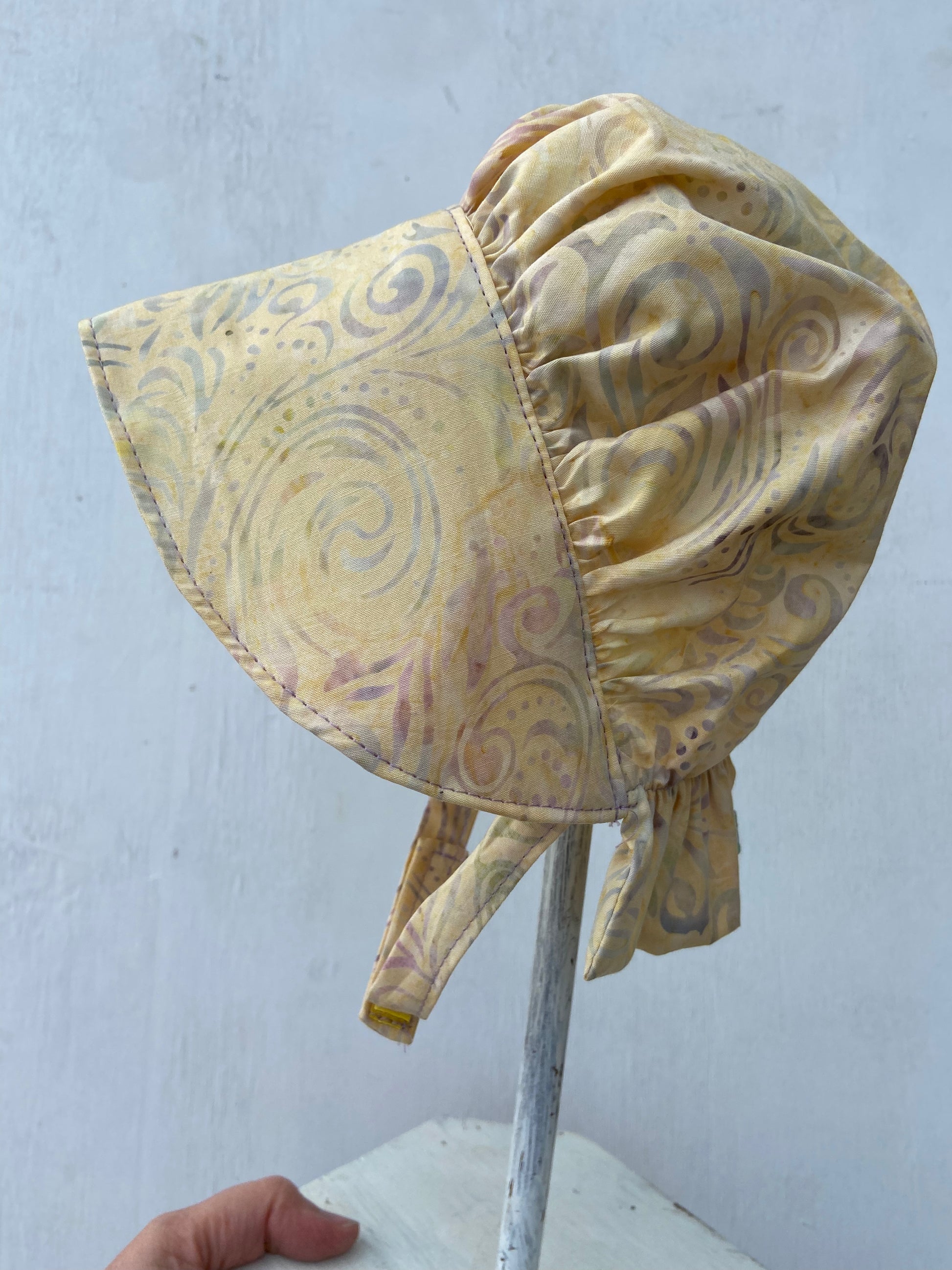 History repeats itself. This traditional design is extremely popular and very practical. The brim moves well with the baby and protects their face and neck from the sun. These handmade hats come in quality cottons that will look great on your baby.