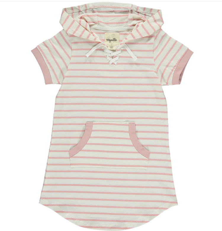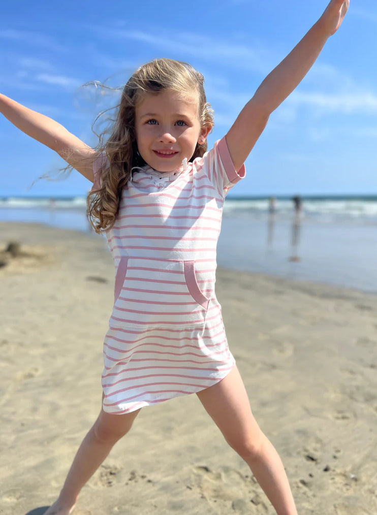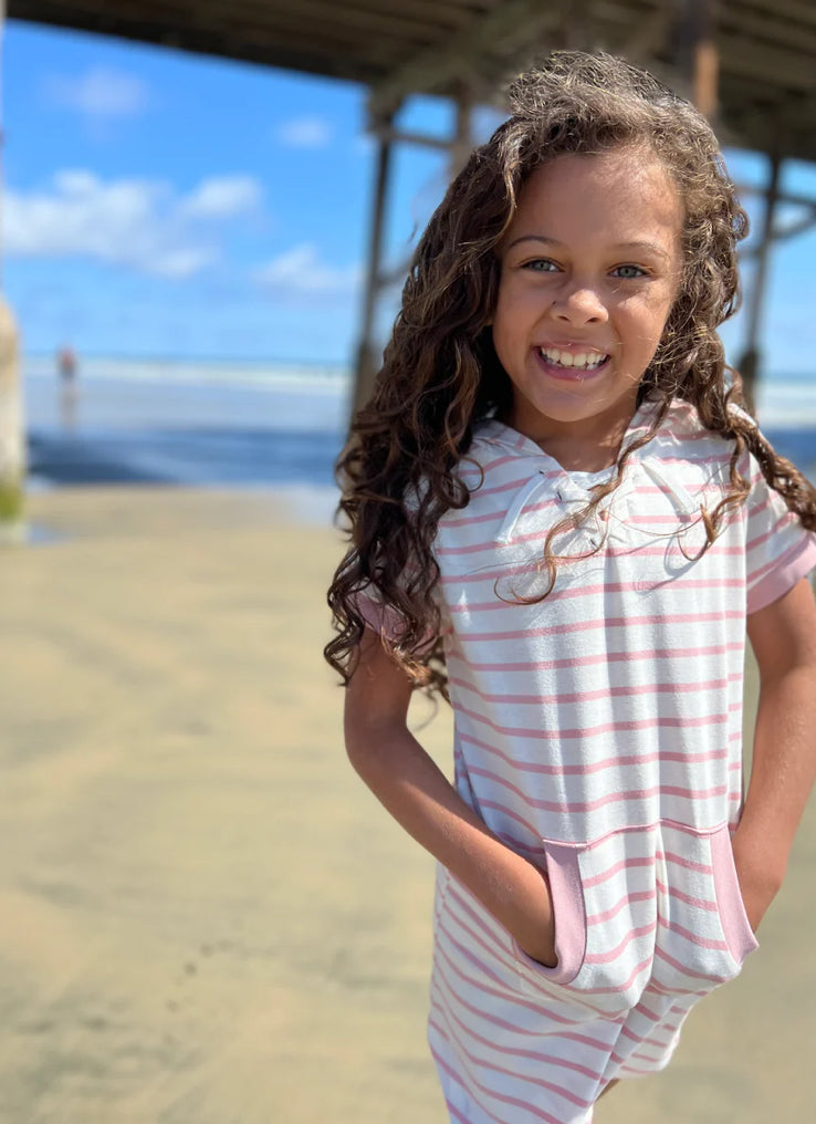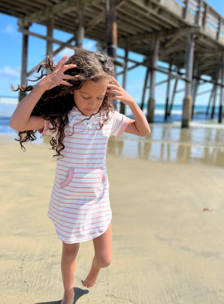 The Tracey is a must have. Featuring pink and ivory nautical stripes, this dress is simply timeless! Wear it over a swimsuit or alone. This playful yet sweet basic will add a touch of fun to any outfit.