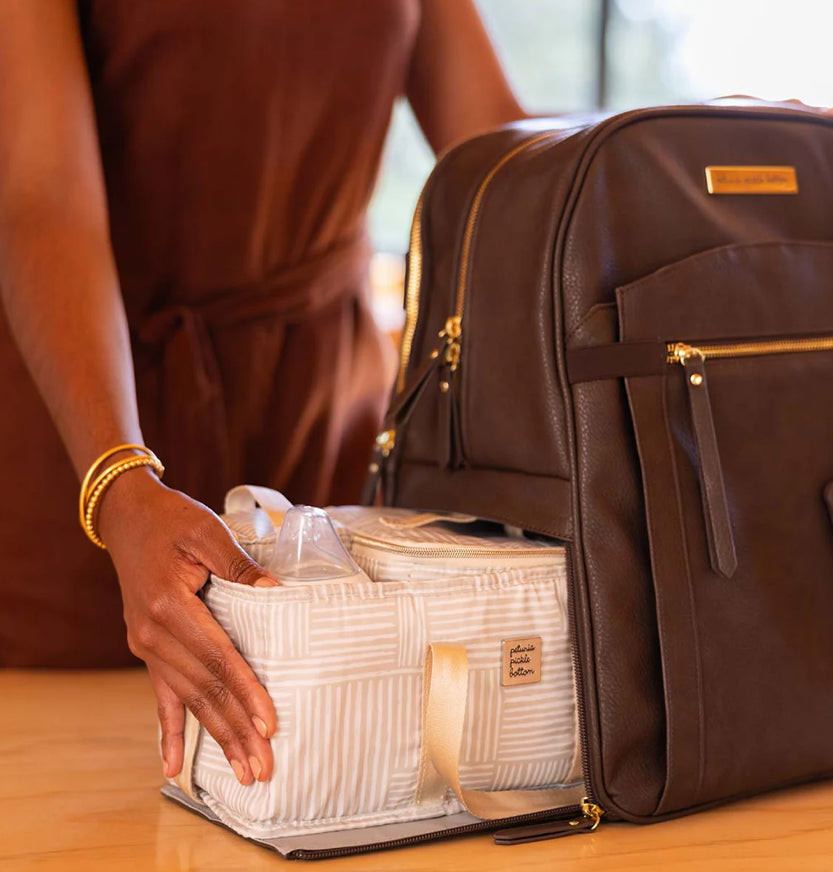 Designed to carry a breast pump with all the accoutrements and gear for any office or outing, the 2-in-1 Provisions Breast Pump Backpack keeps all the details discretely at the ready for busy moms, then easily transitions to a fully functional, versatile backpack with an eye for style when the pumping days are done.
