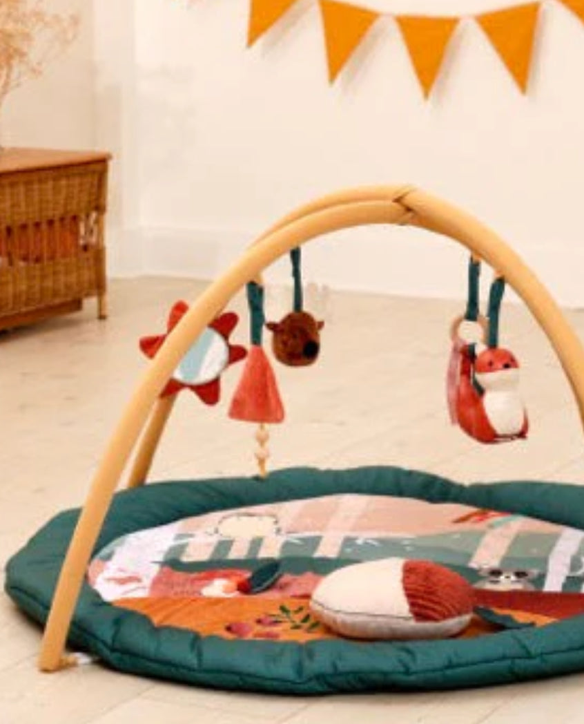 This Playmat with Arch-large is full of surprises to discover: features 10 playful multi-sensory activities to boost your baby’s development.