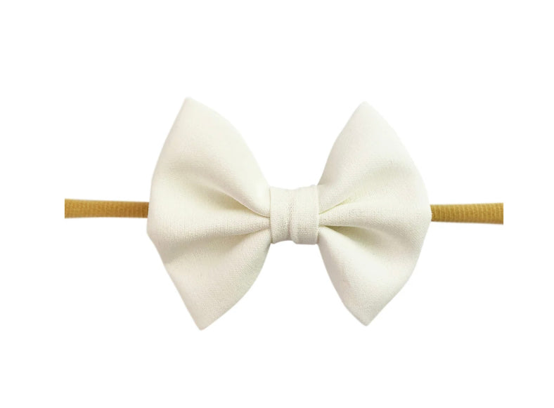 Skinny headband for babies and toddlers. Great for baby girls and toddler girls hair accessorizing in so many outfits! A perfect 'grow with me' hair accessory because the nylon is very stretchy. It fits newborns up to toddlers very comfortably Hand wash only so it lasts a long time Bow 9.6 cm length, 8 cm in height. Soft Material Made from 92% Nylon + 8% Spandex Color.