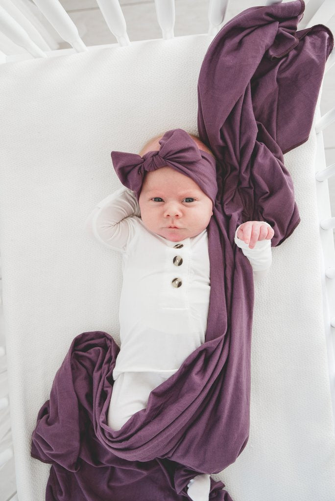 Perfectly sized for newborns, our stylish headband features enough stretch to grow with your baby through the first six months. They are made from the same premium knit fabric as the Copper Pearl swaddles, hats, quilts, security blankets and covers.