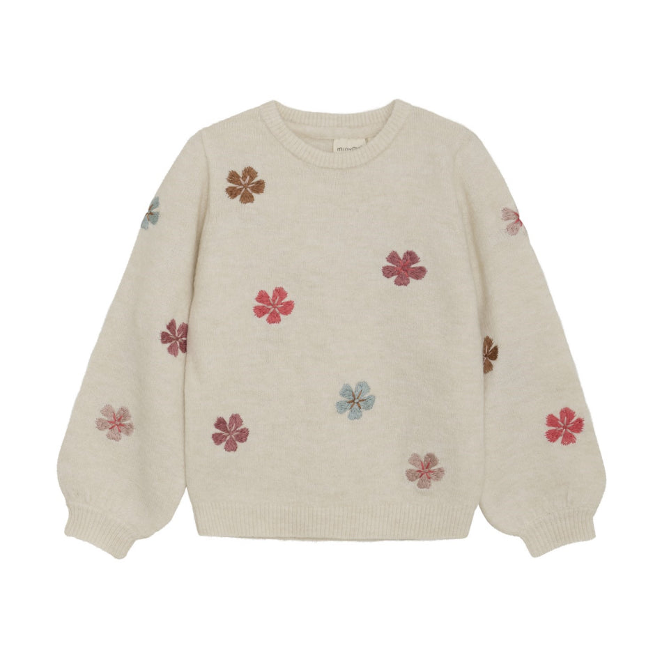 Beige Sweater with Coloured Daisies -Minymo