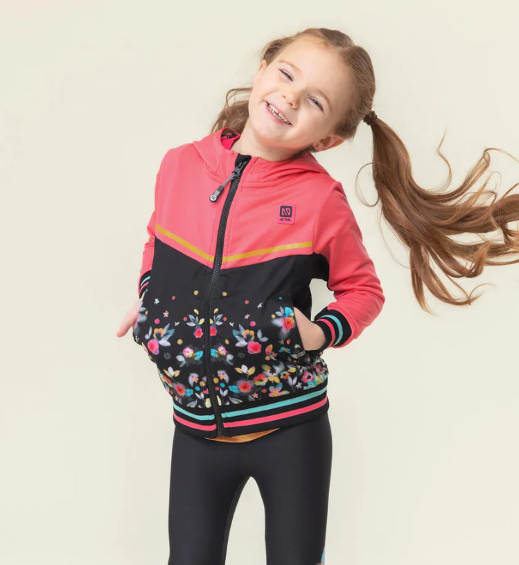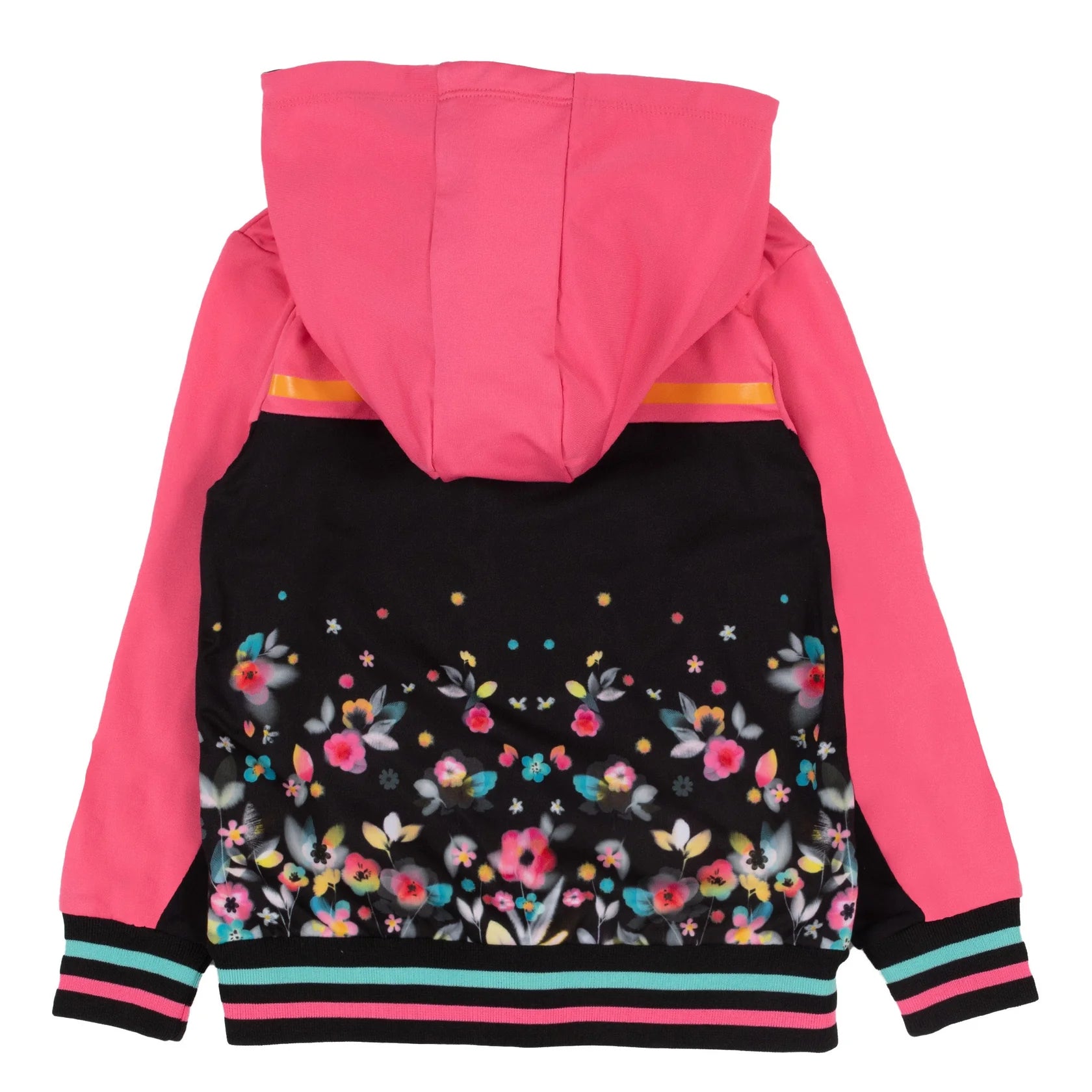 Black and Pink Floral Girls Athletic Hooded Jacket-Nano