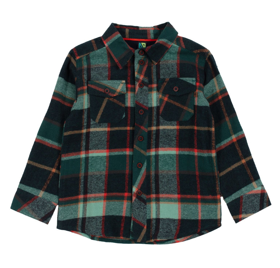 Green Plaid Baby Long Sleeve Plaid Shirt with Knit Back-Nano