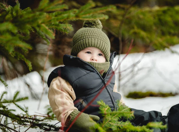 Olive Lined Knit Hat With Pom and Ears -(Fur Lined)Calikids