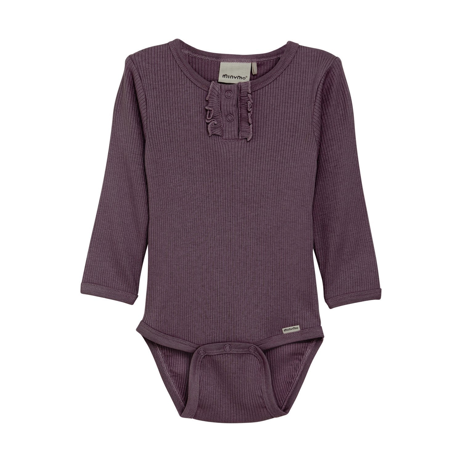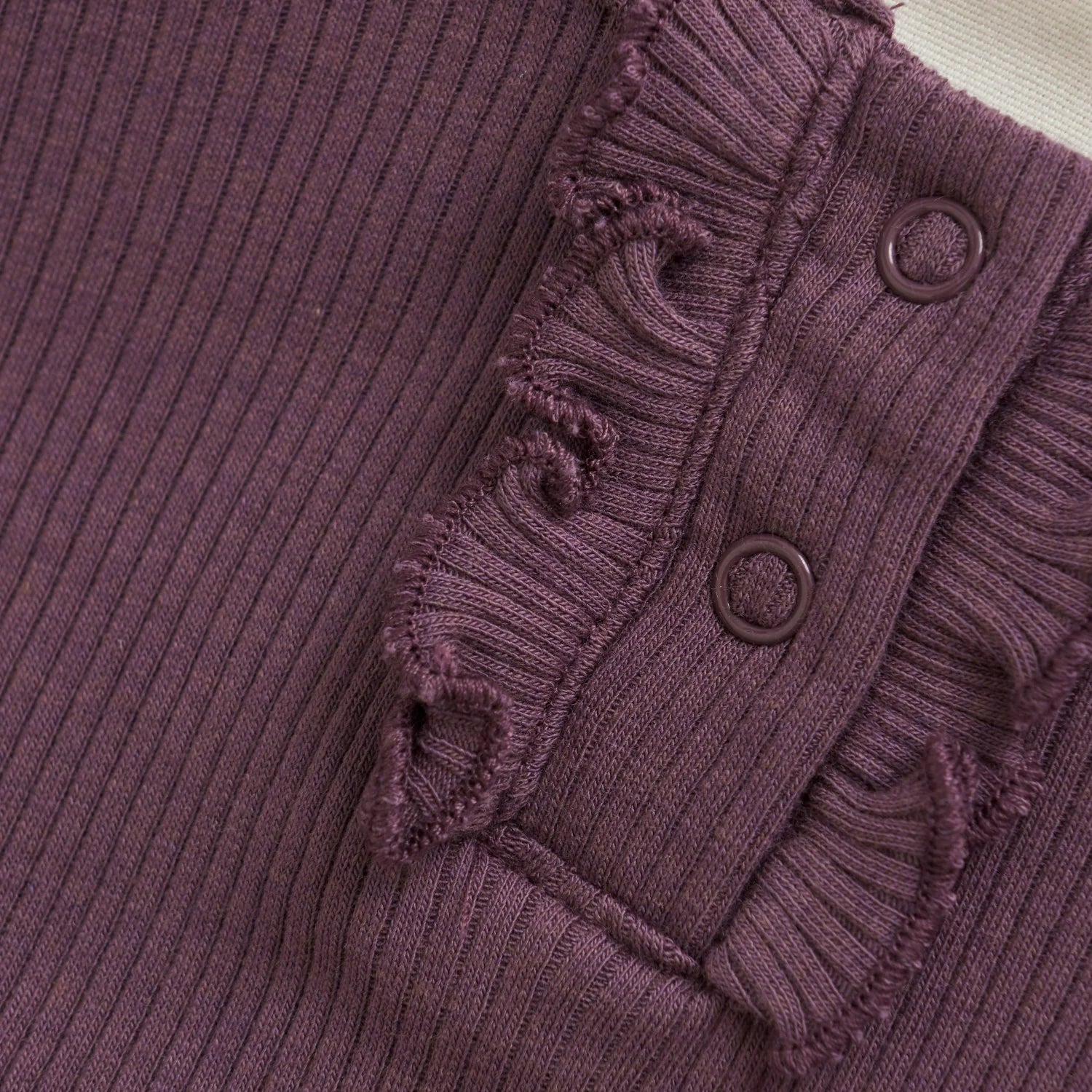 Purple Ribbed Long Sleeved Bodysuit In Cotton-MinyMo