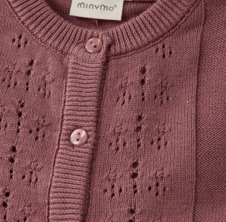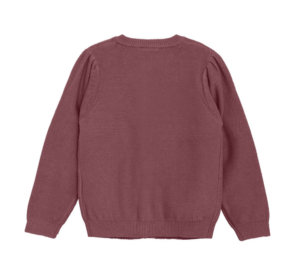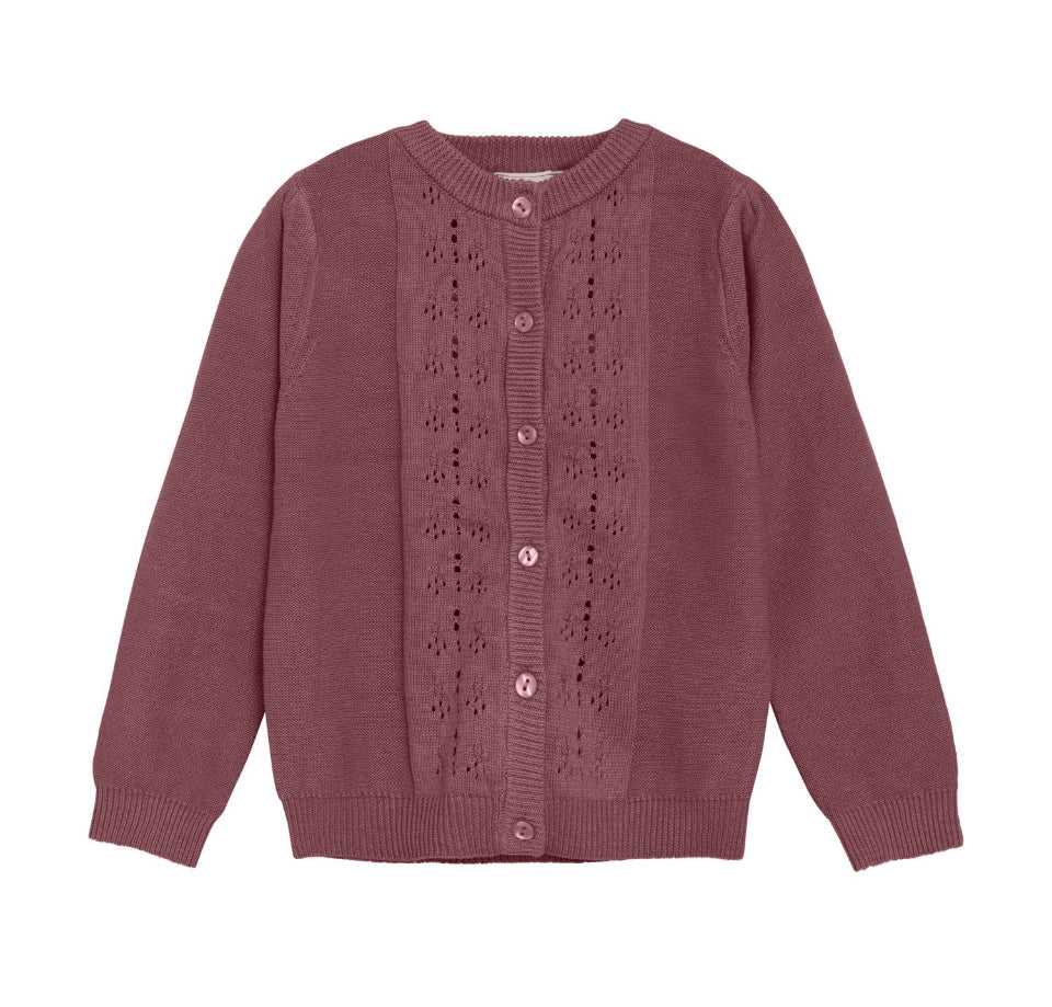 Muted Burgundy Knit Girls Cardigan with Embroidered Detail -Minymo
