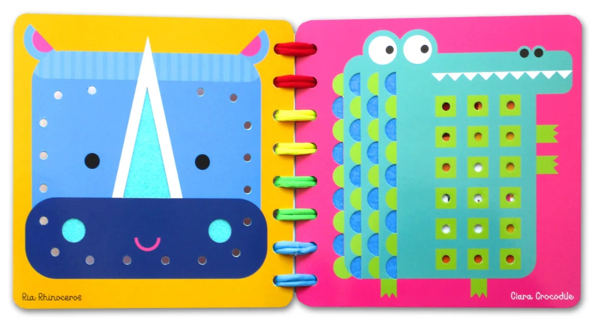 Meet the jungle friends in this fun lacing book. With four colorful laces and ten animal pals to decorate, this book helps to develop hand-eye coordination and inspires wild creativity!