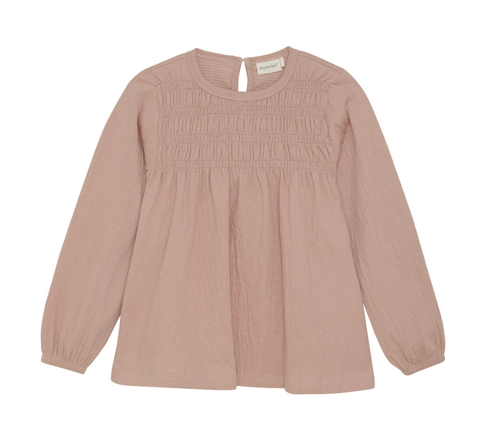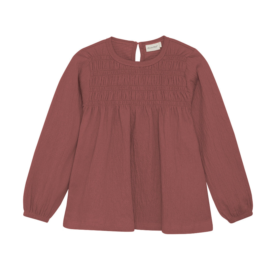 Crinkled Gauze Long Sleeve Smocked Blouse-MinyMo- 2 Colours