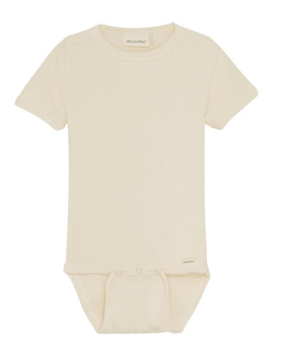 Cream Short Sleeve Rib Onesie-Minymo 2 Colours