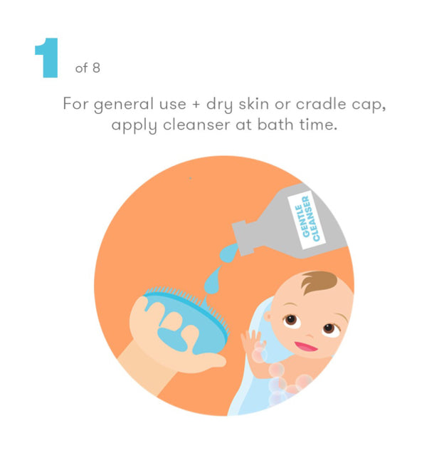 For general use + dry skin or cradle cap : Apply cleanser at bath time and brush in a circular motion from head to toe.