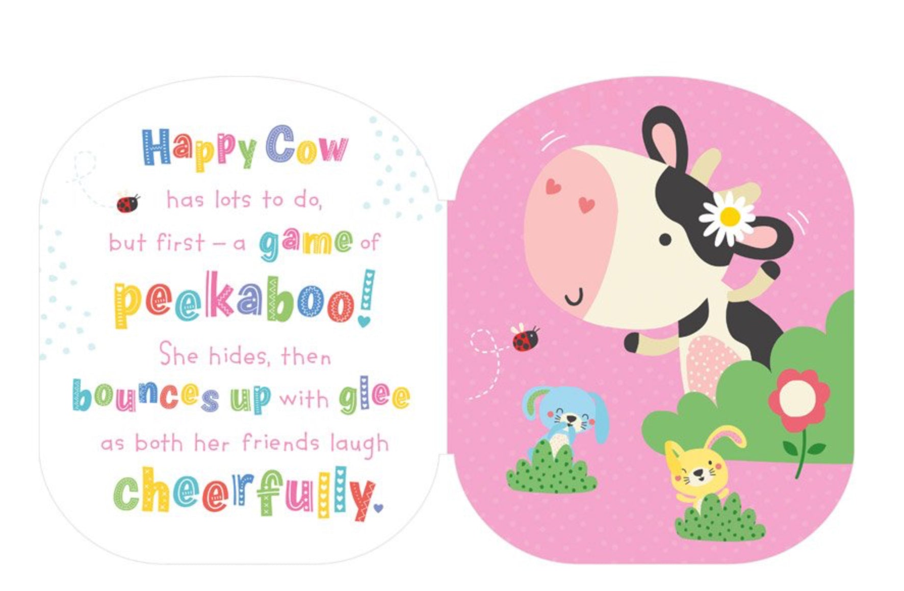 Join Happy Cow on her busy, fun-filled day! Play a game of peekaboo, splash in muddy puddles, and cozy up beneath the stars in this adorable book, complete with a super-soft cover to snuggle and squish. For newborns +.