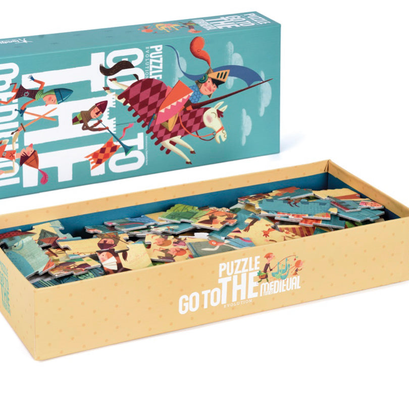 Let’s go back to the past and meet the medieval charachters living in Londji’s castle. A 100 piece puzzle to travel though time. Illustration by Sebastià Serra.