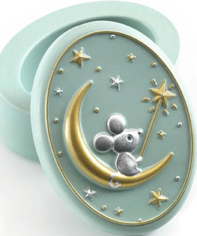 Keep those precious pearly whites safe! Introducing the Djeco Toothbox - Oh My Teeth, a special and pretty box designed to keep your little one’s lost teeth safe while waiting for the tooth fairy to collect them. This charming tooth box features a delightful design with gold and silver metallic paint that adds a touch of magic.
