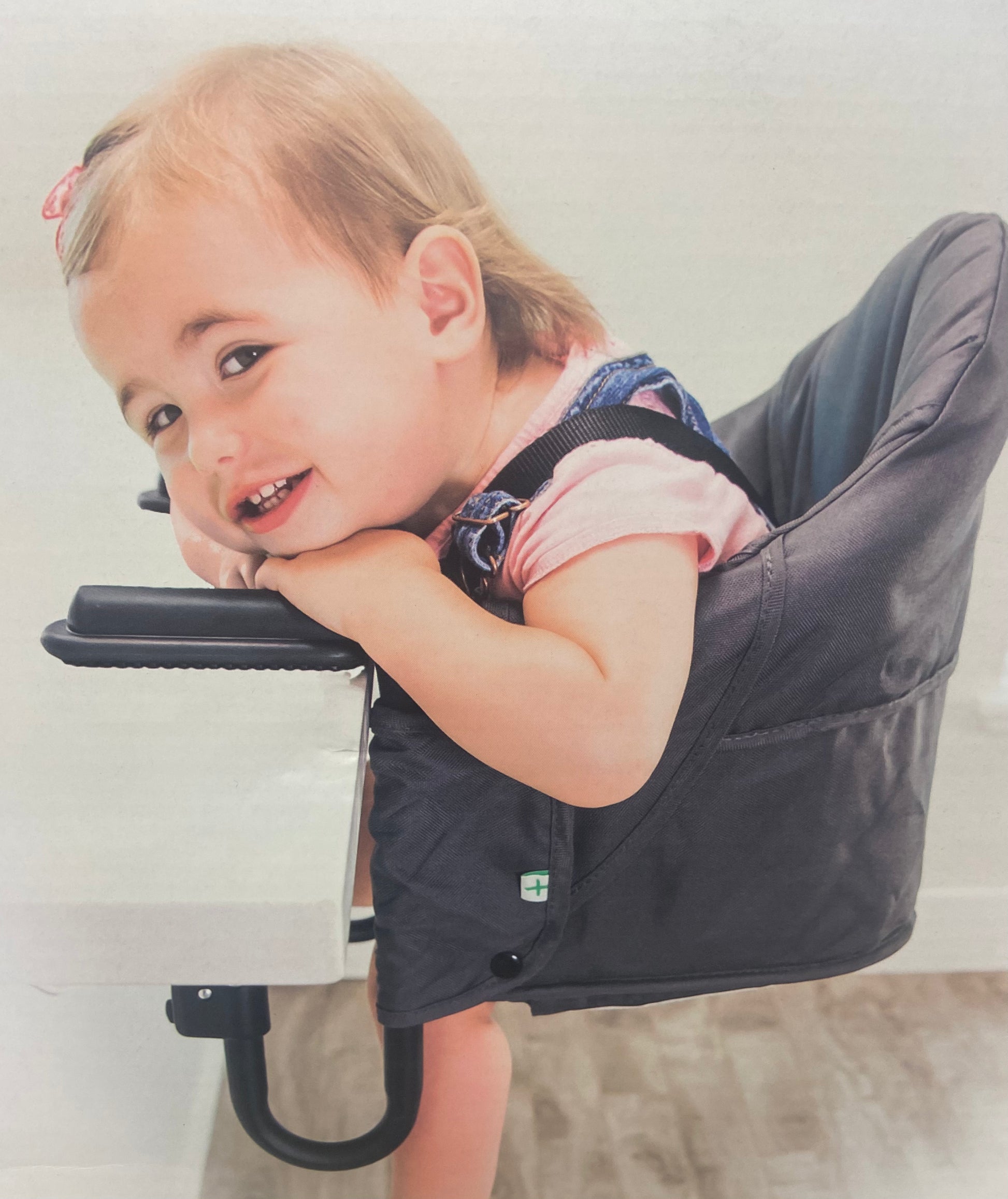 Whether at home, in a restaurant or on a picnic day, the Perch portable hanging high chair will give your child a special place at the family table. The Perch attaches to most tables and folds compact for easy storage. A handy travel bag is included, which you’ll be able to store under the seat when not in use.