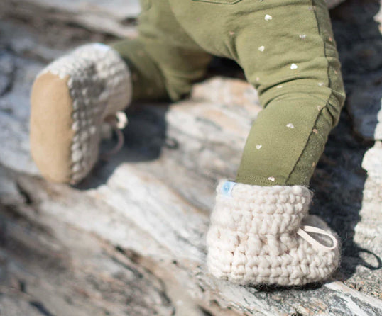 The sweater moccs are handmade out of the softest wool and a looped stitch leather sole. With a cozy inner lining, these are the most comfortable shoes for any baby.