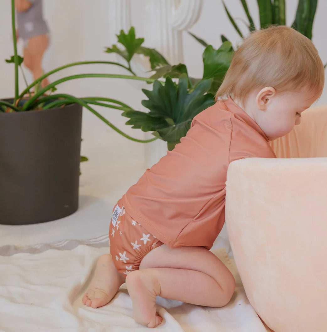 Available in 2 sizes, the La Petite Ourse Swim Shirt guarantees UV50+ protection for your child. The Swim Shirt not only protects your child from the sun, but also from any other irritating materials when in the water!